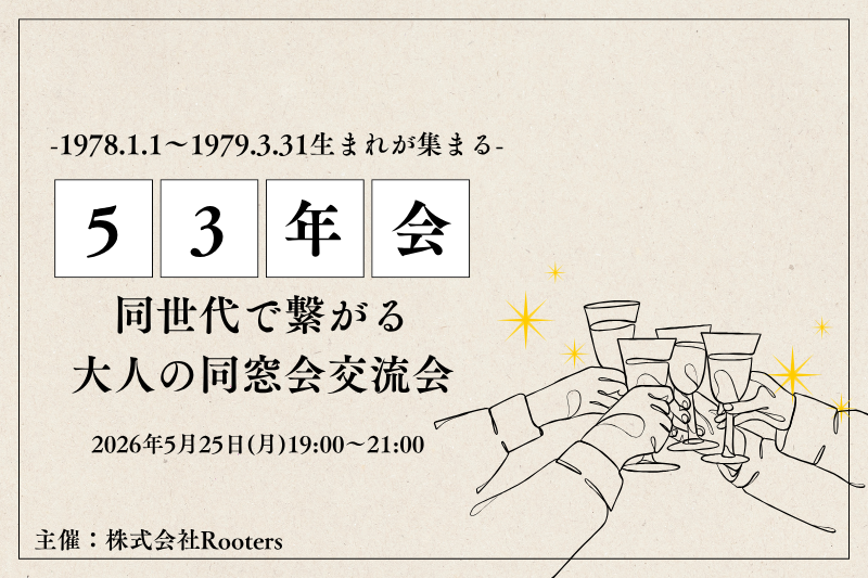 【5月25日(月)19時~】53年会~1978.1.1~1979.3.31までの同世代で繋がる大人の同窓会交流会